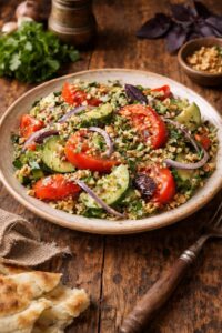 Pepinos, tomates, aceites aromáticos, vinagre,