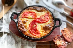 Pollo, champiñones, cebolla, nata, queso, pimientos, tomates cherry