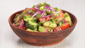 Куриная грудка, болгарский перец, огурец, укроп, майонез